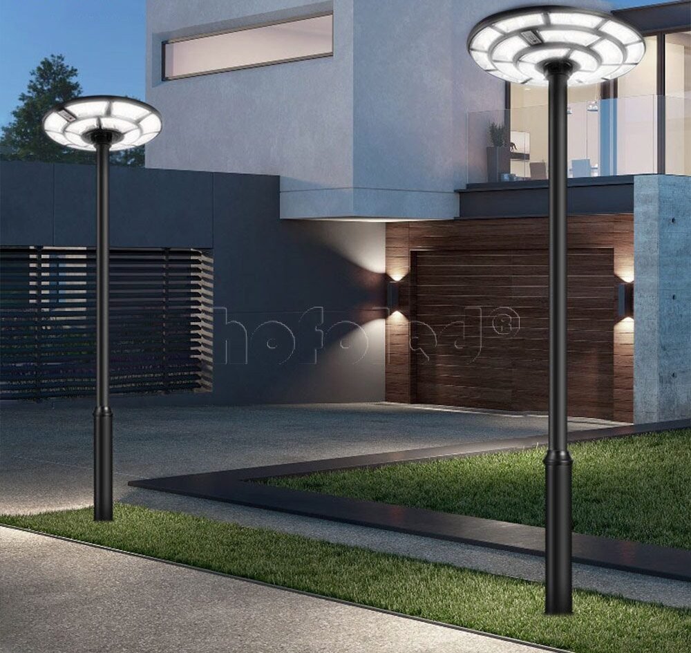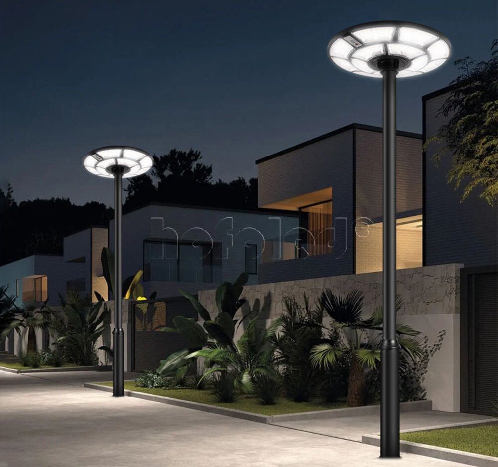 La Farola Solar LED Profesional Ovni es un sistema de iluminación solar autónoma para exteriores, diseñado para ofrecer iluminación 360° de alta cobertura en espacios abiertos. Integra en un solo equipo el panel solar, batería, controlador inteligente, módulos LED circulares y sensor de movimiento PIR, permitiendo un funcionamiento eficiente sin conexión a la red eléctrica.